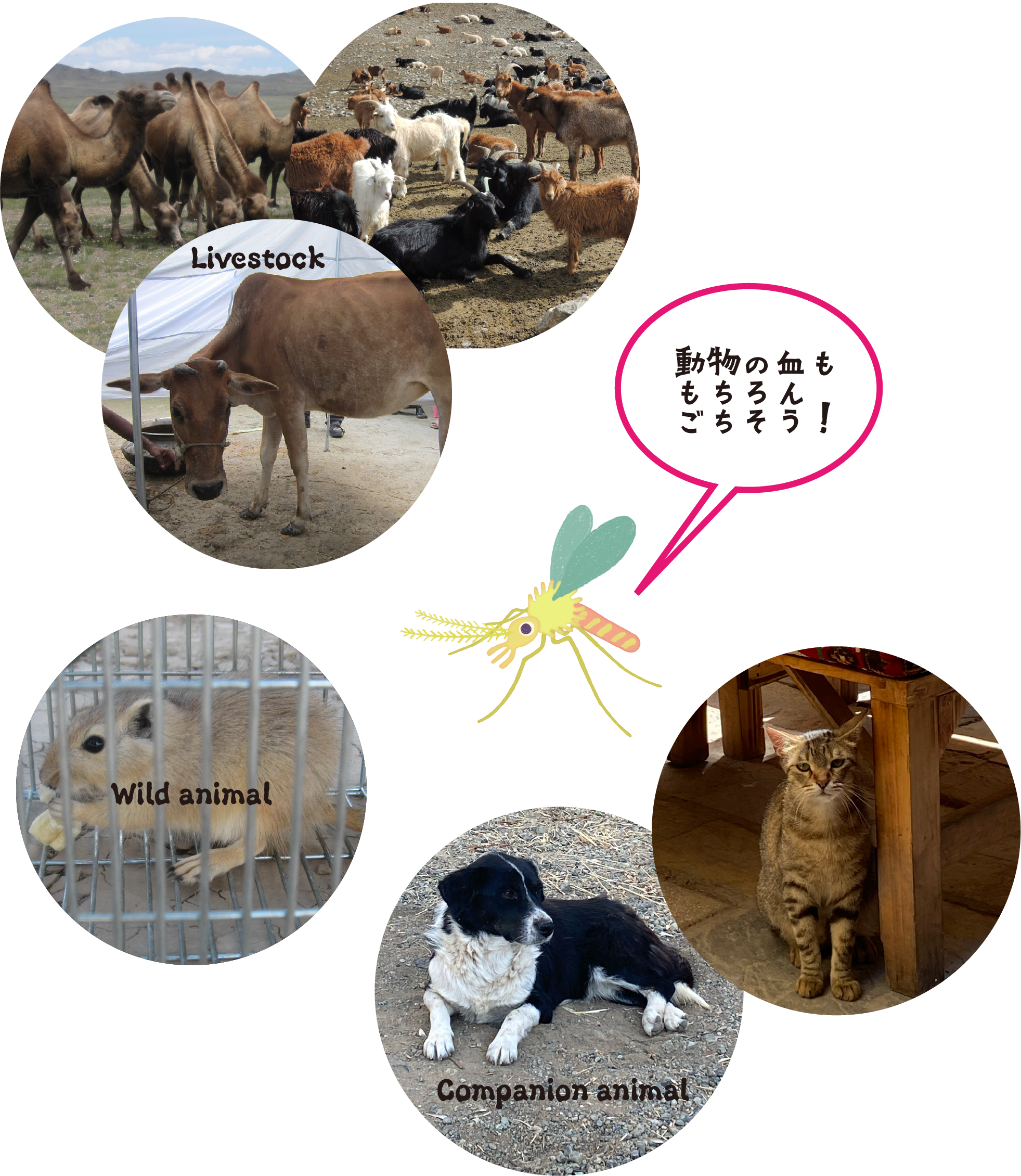 サシチョウバエにとっては、動物の血ならごちそう。動物がいるところに、サシチョウバエが寄ってくる。 私たちの生活に必要な家ちくは、生活空間が近いので人がさされる確率も上がる。難しい・・・。 どうする? 関係図 寄生虫 ベクター ヒト